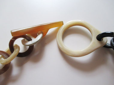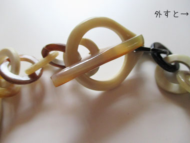 留め金にあたる部分にもホーンを用いておしゃれ度×意匠感アップ!(実際は外さなくとも着用できます)