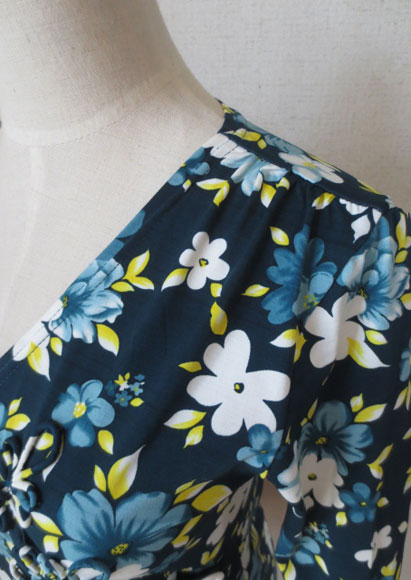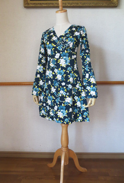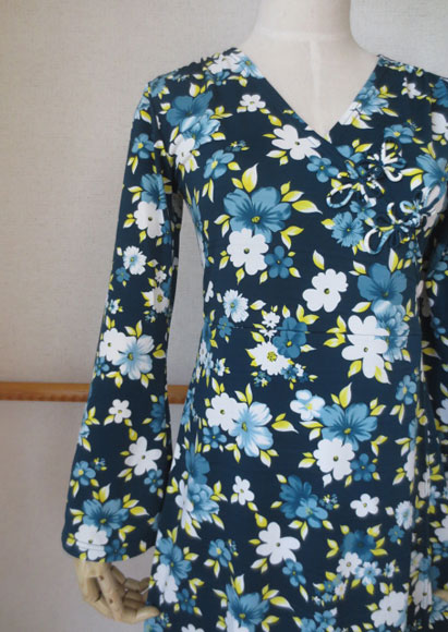 大人気のラップスタイルワンピ、こちらはブルーグリーンのベースが美しいくっきりとした花柄素材!