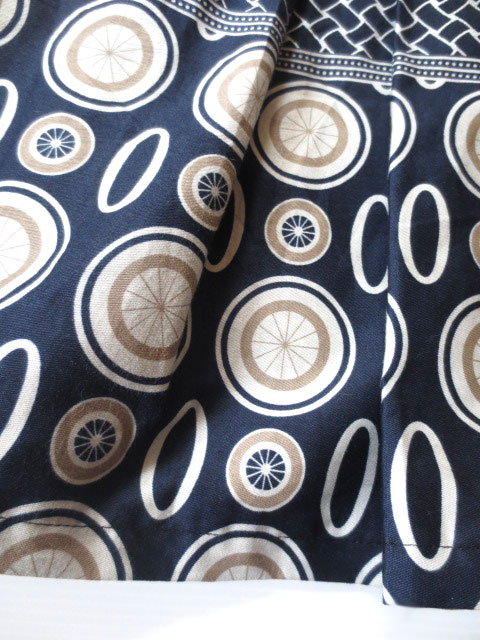 ダークブルー×オリエンタル柄・パイピングデザイン膝丈スカート |