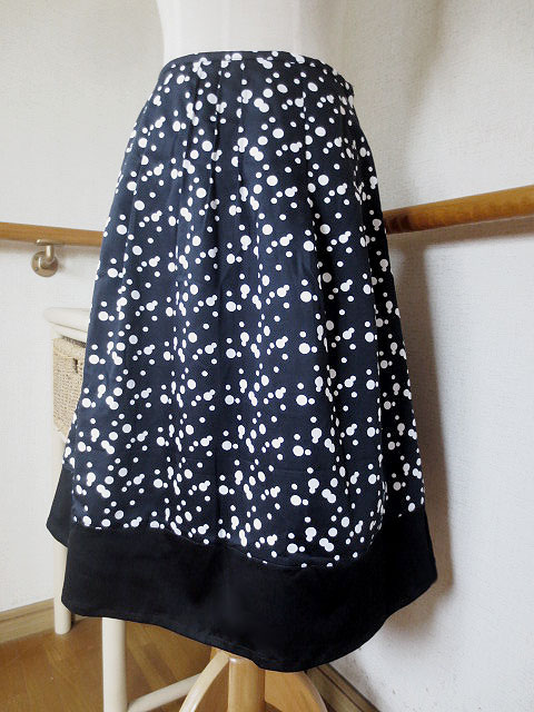 ブラック×アレンジドット・ブラック布使いミディアムレングススカート |