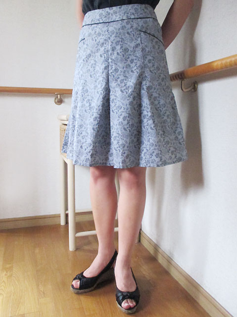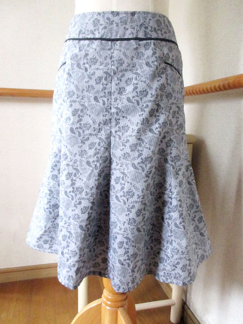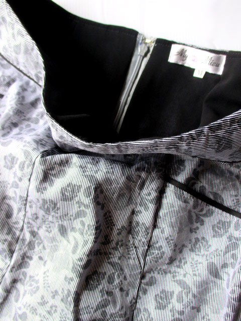 ■ストライプ×蓮花デザイン・ブラックパイピング膝丈スカート **by Mymieu**