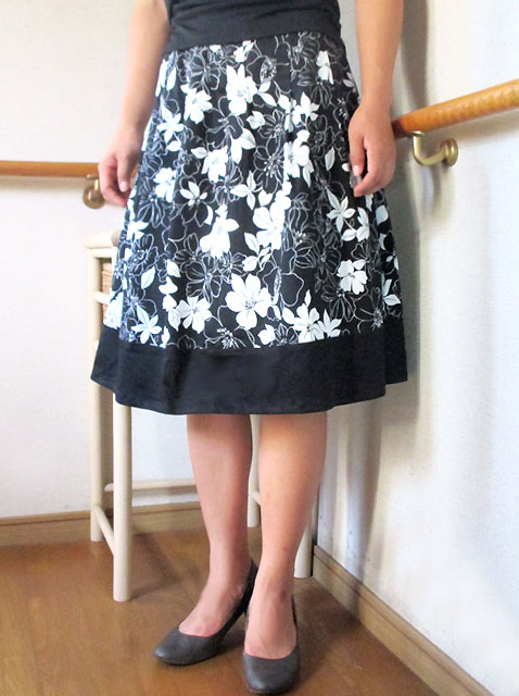 ■ブラック×アジア花・ブラック布使いミディアムレングススカート **by Mymieu**