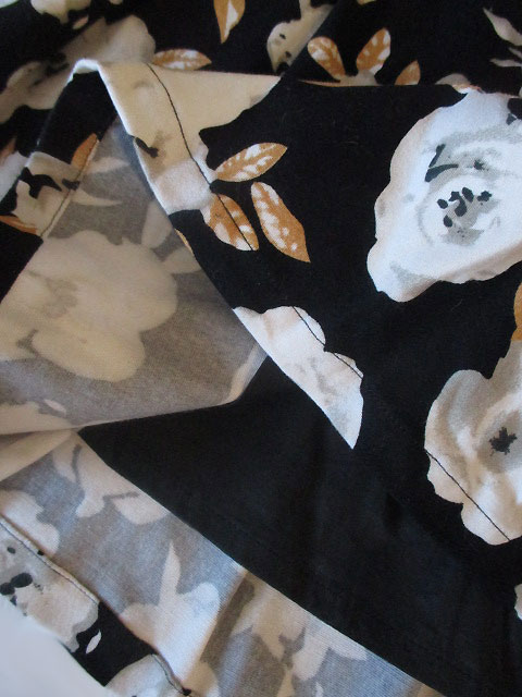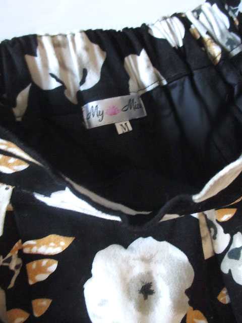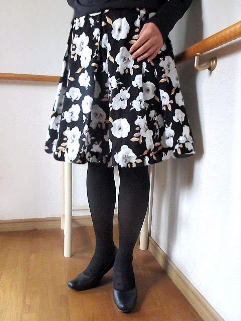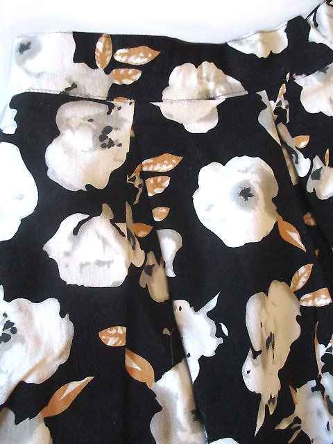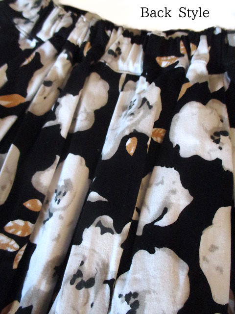 ■ブラック×オフホワ花・ナチュラルプリーツミディアムスカート **by Mymieu**