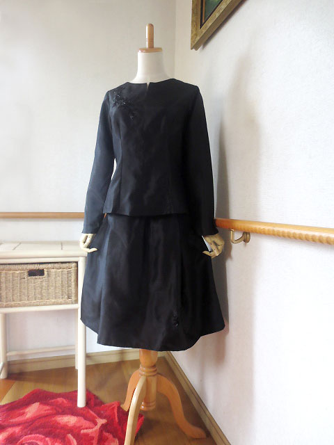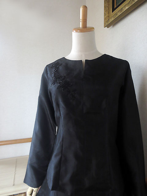 ■ブラックシルク×ビーズ刺繍・チュニック+ミディアムレングススカート **by MyMieu**