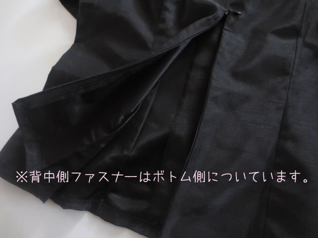 ※ファスナーですが背中側の首下10pから裾までついております。着用時にその首下まで全開する必要はなく、背中の2/3くらいを開いて着用すれば、