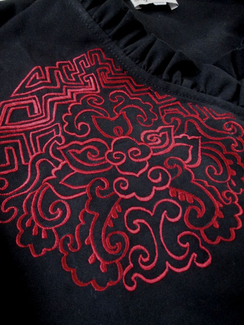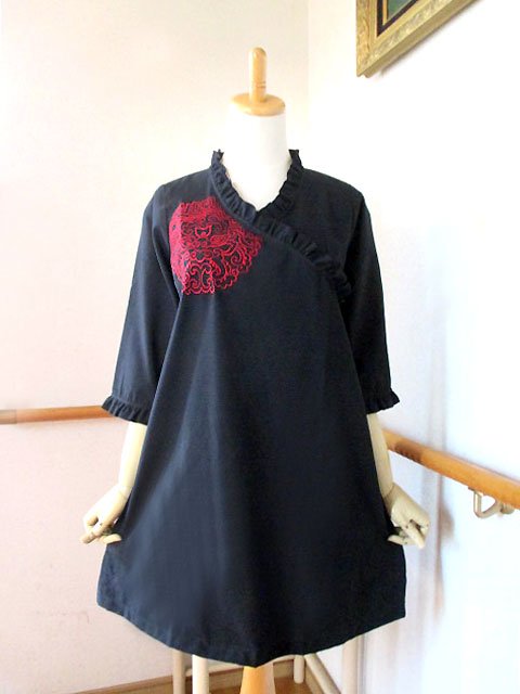 ■ブラック×シノワレッド刺繍・フリルデザインチュニックワンピ **by MyMieu**