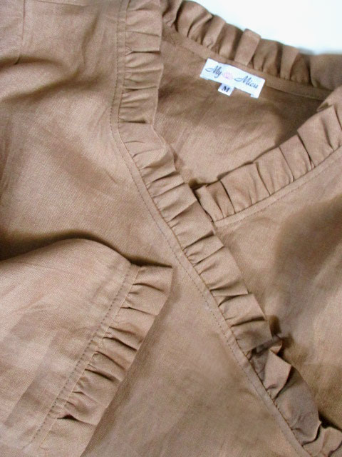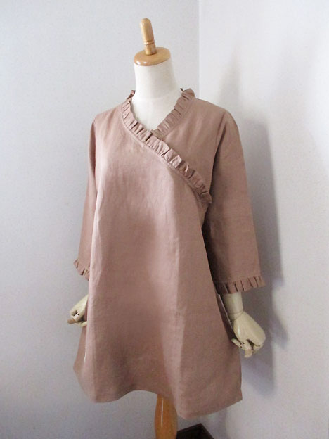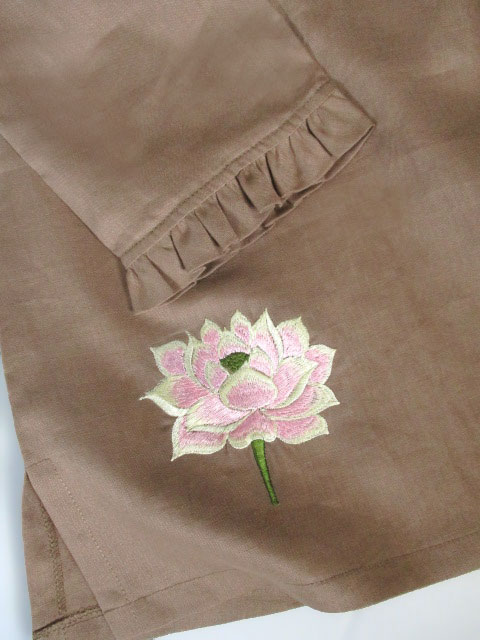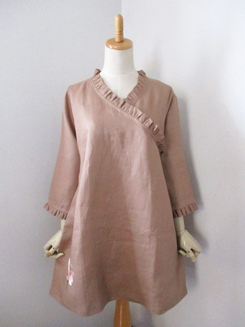 ■胡桃色×ロータス刺繍・フリルデザインカシュクールチュニックワンピース **by MyMieu**