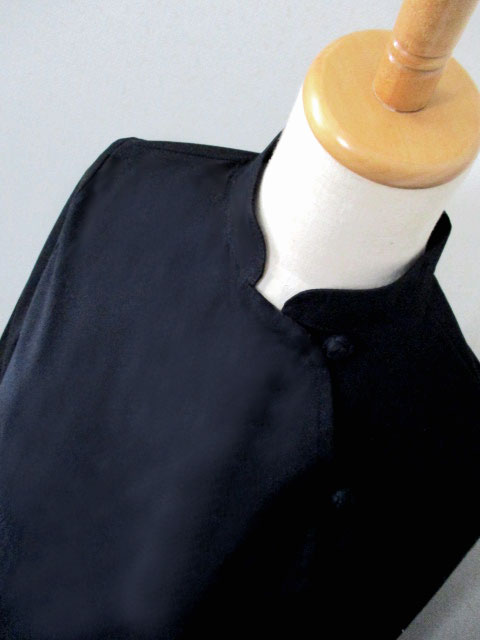 フロントに少し開きを入れた立ち襟と、緩やかにカーブをつけてサイドへとつながるフロントには5個のチャイナノットが使われています♪