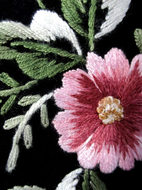 一番下の刺繍のアップ画像、花芯の部分は、ゴールドとアイボリーの2色を使ったフレンチノットが施され、本当に細かくて綺麗なのです♪