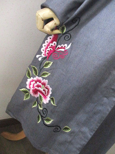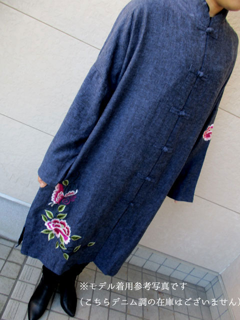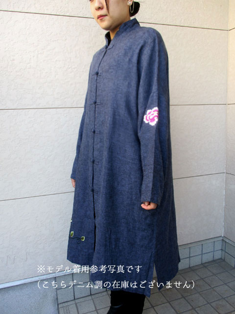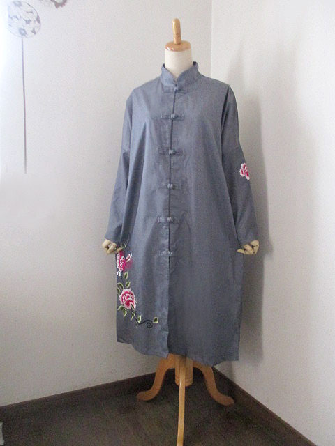 ■グレー×シノワ刺繍・チャイナストレートボタンロングスタイルデザインコート **by Mymieu**