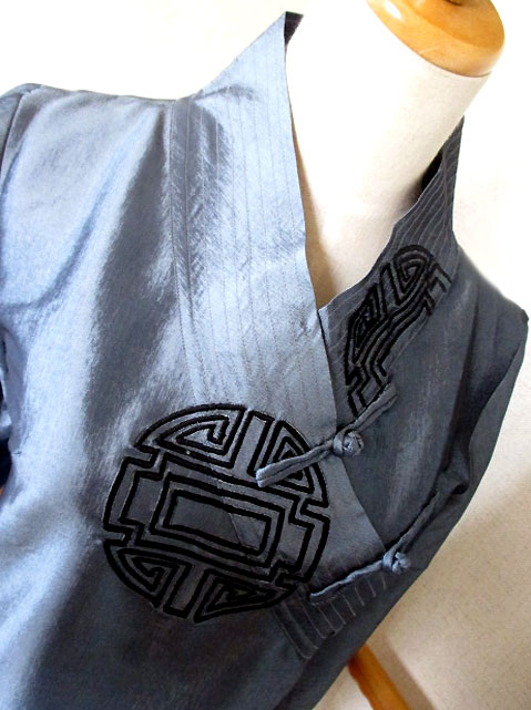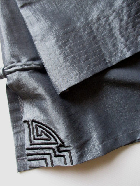そしてこのステッチの上に刺繍を重ねたところもポイントで、シンプルな中華文様ながら動きがあるデザインとなっています。