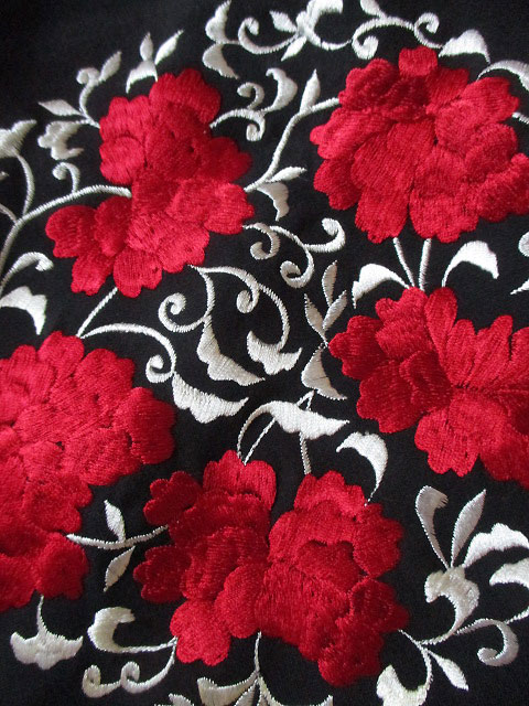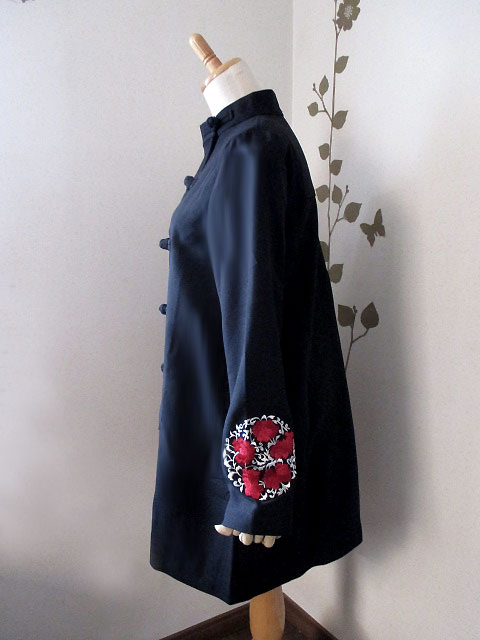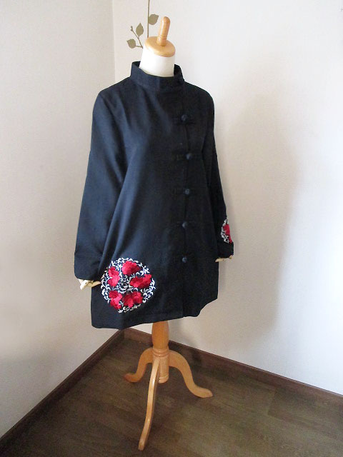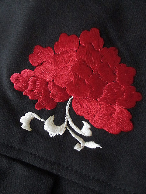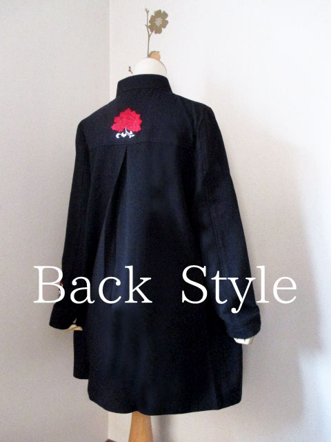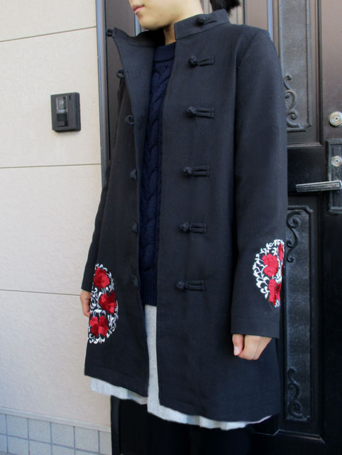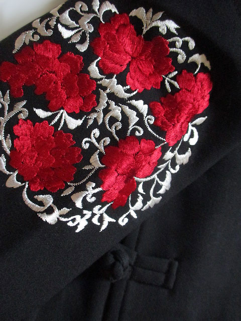そしてコートに初めて使った刺繍はやっぱりシノワズリなイメージの赤い花と、それをモチーフに円形でまとめたシックなデザイン!