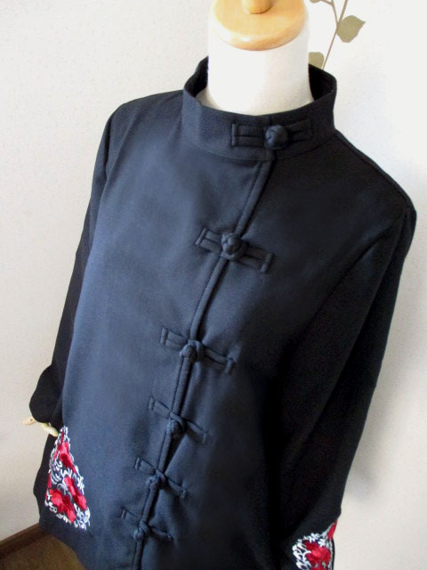 そのカラー(ネック)部分にもストレートスタイルのチャイナノットがついてるのが特徴的で、奥さまは魔女のサマンサをイメージした、レトロ感を持ったおしゃれデザイン♪