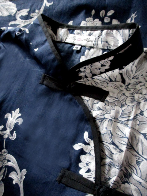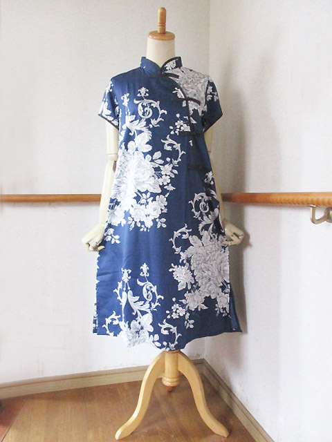 ■瑠璃紺×グレーシルバー大柄花・香港スタイルフレンチワンピース **by MyMieu**