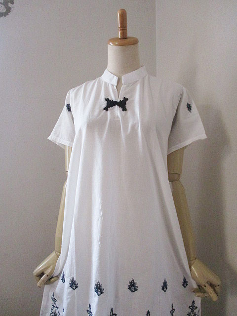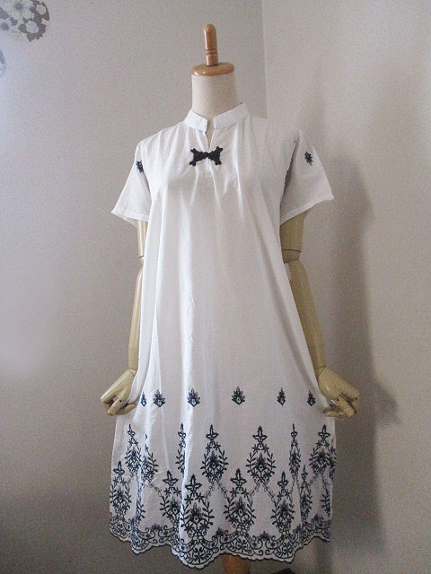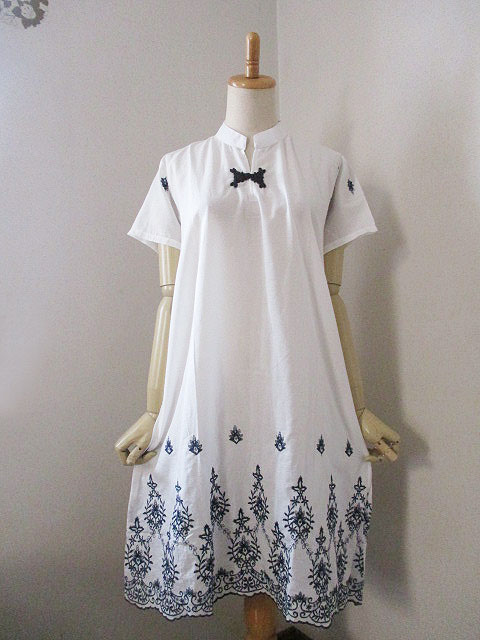 ■オフホワ×モロッカン刺繍・シノワ花ボタンチーパオフレンチワンピース **by MyMieu**