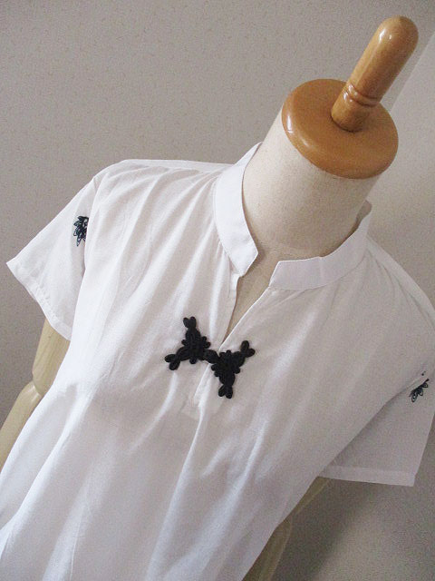フレンチスリーブは安心の14pと長め丈で、こちらにも刺繍をあしらってワンポイントに♪裾までは緩やかなAラインでヒップまわりもすっきりカバー。