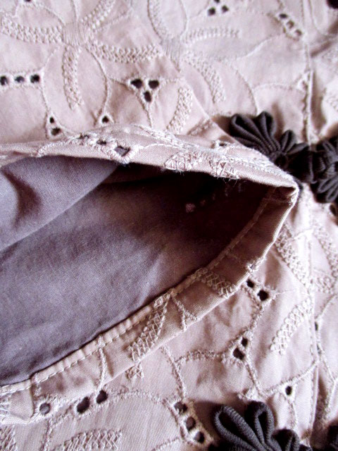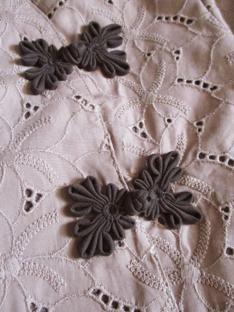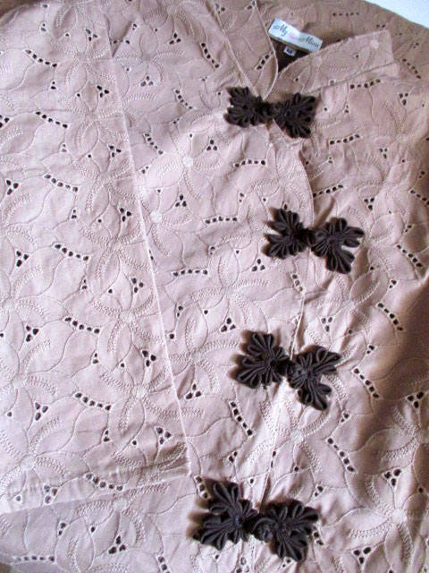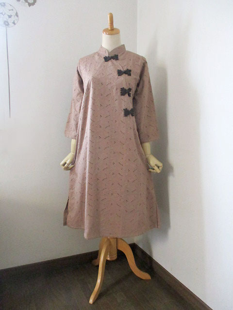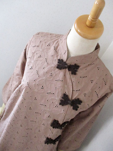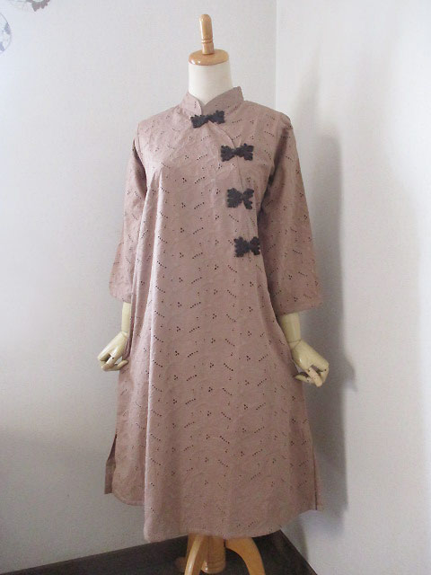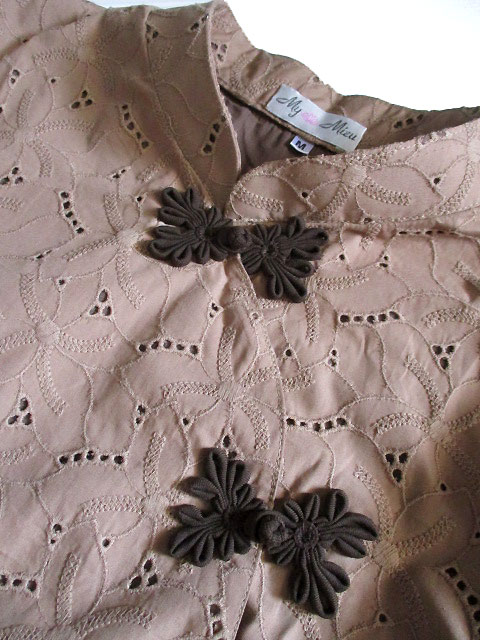 ■クリームモカ×コットン総レース・シノワ花ボタン香港スタイルワンピース **by MyMieu**