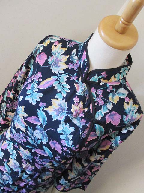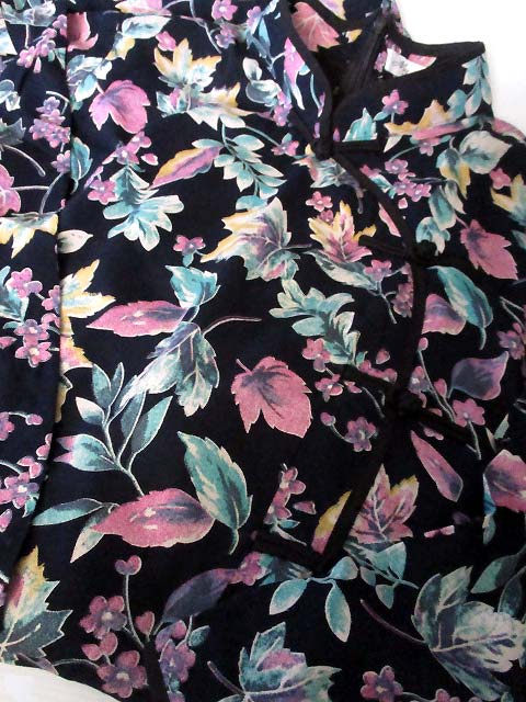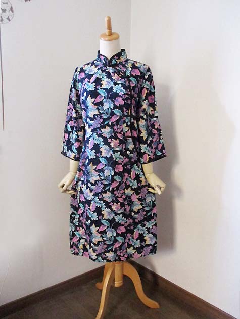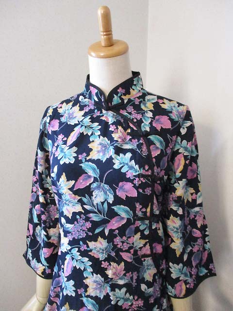 ■濃紺×ボタニカル柄・シノワストレートボタン香港スタイルワンピース **by MyMieu**