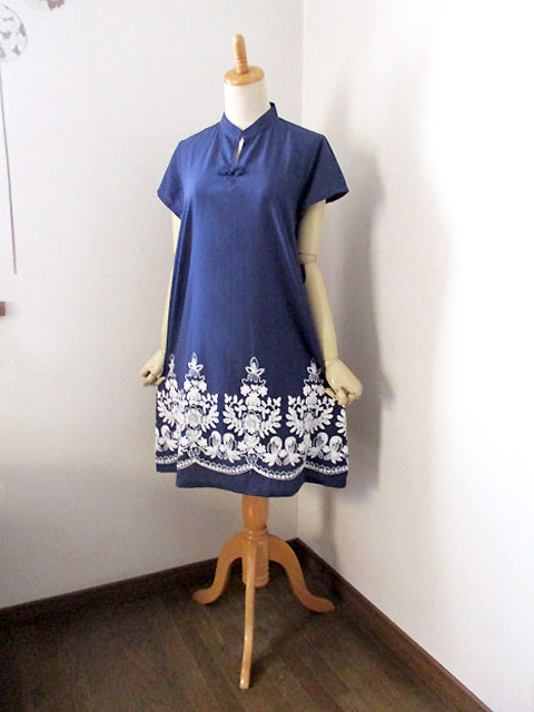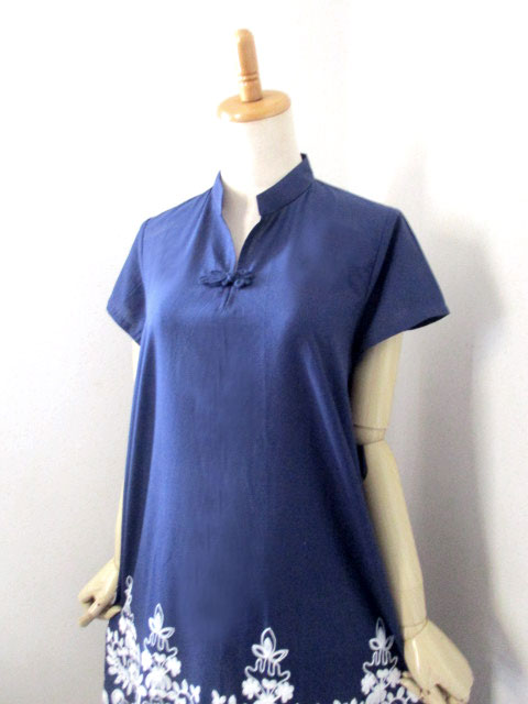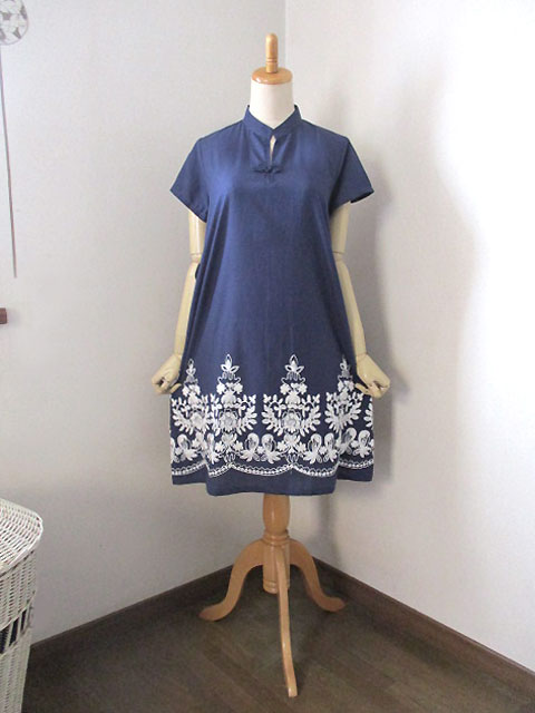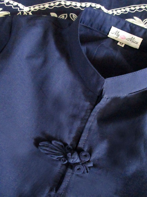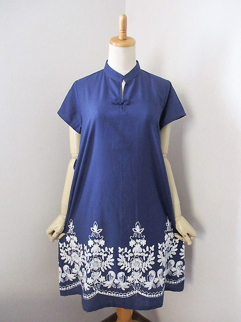 ■花紺青×モロッカン刺繍・シノワ花ボタンチーパオフレンチワンピース **by MyMieu**