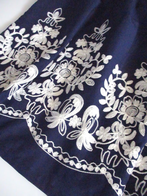 オリエンタルなデザインのモロッカン刺繍はオフホワイトの刺繍糸を豊富に使い、独特の手法でほどけることがありません。