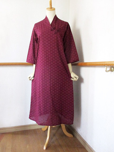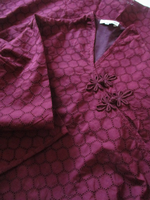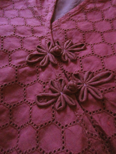 ■臙脂×コットン総レース仕様・ループ花ボタンサイゴンスタイルワンピース **by MyMieu**