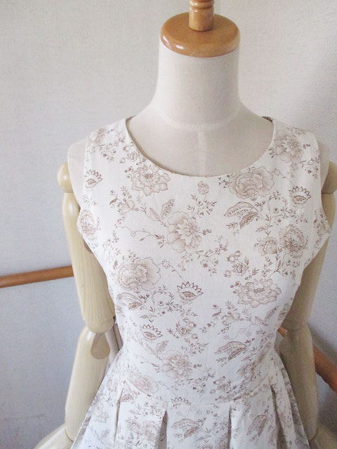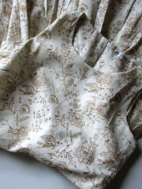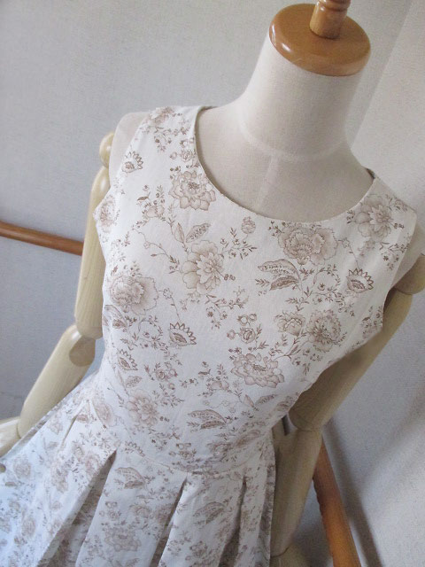 今回の生地はアイボリーをベースにモカ色×線画で描かれた更紗柄♪更紗柄の中では空間を生かしたデザインで、強さがなくとっても優しく女らしいイメージです。