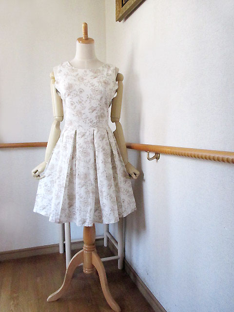 ■アイボリー×モカ色更紗・プリーツスタイルリネンワンピース **by MyMieu**