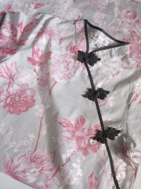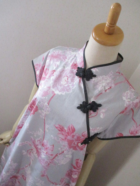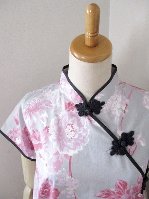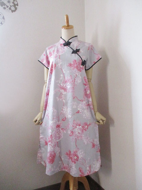■ライトグレー×紅鶸シノワ花・シノワ花ボタン上海スタイルフレンチワンピース **by MyMieu**
