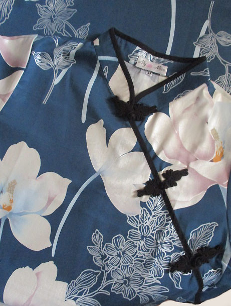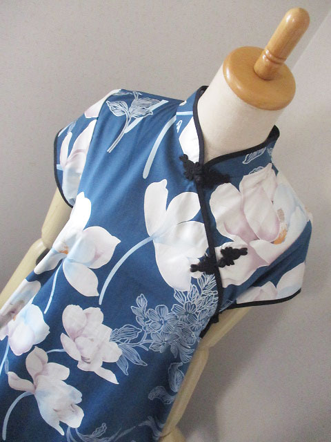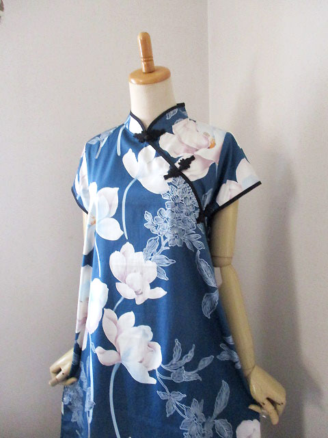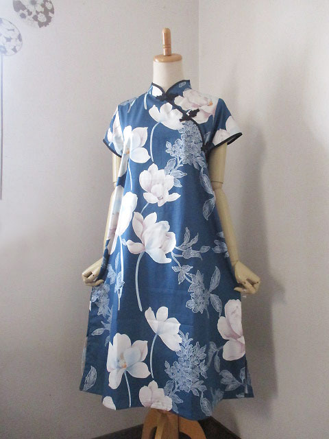 ■青藍色×蓮花デザイン・シノワ花ボタン上海スタイルフレンチワンピース **by MyMieu**