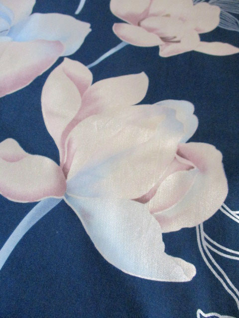 そんな中で見つけたこちら、青藍色をベースに大柄の蓮花が儚くも美しい情緒あるデザインもの!