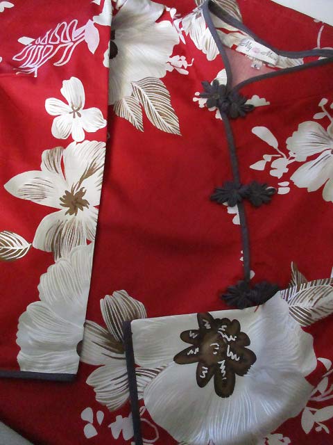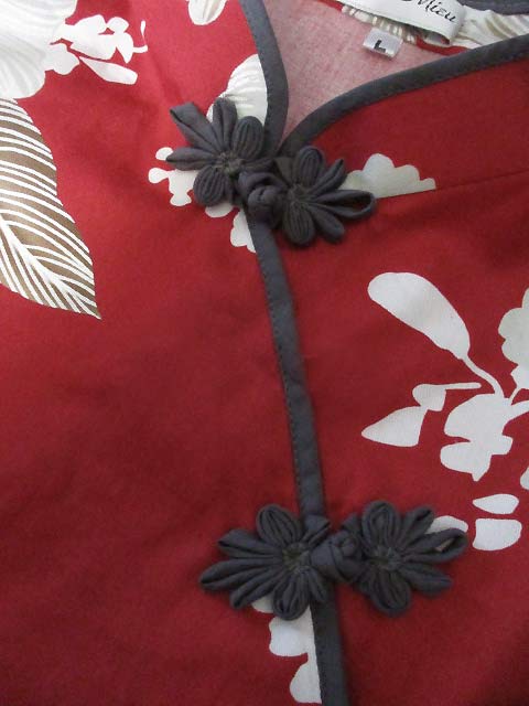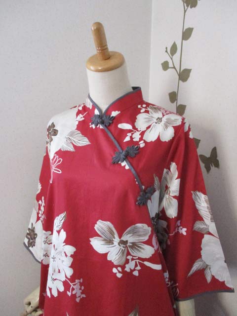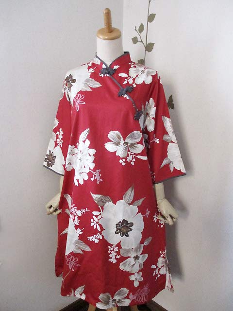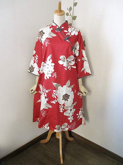 ■韓紅・シノワ大花柄・墨色ボタン上海スタイルワンピース **by MyMieu**