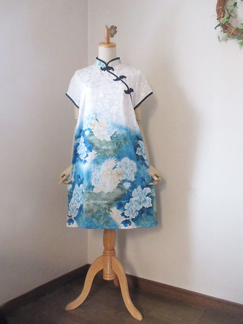 ■シノワブルー×鸚鵡デザイン・上海スタイルチュニックワンピース **by MyMieu**