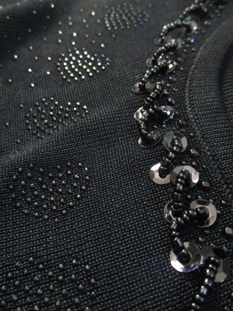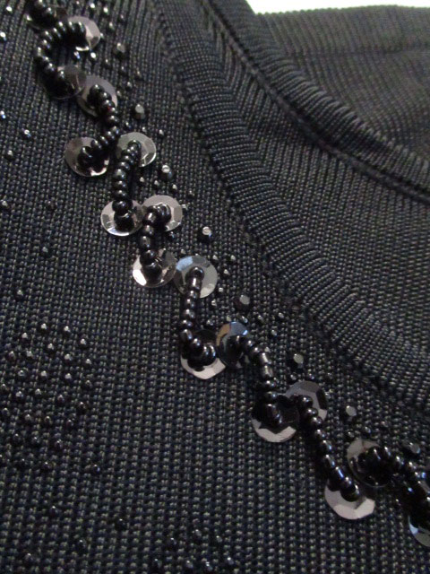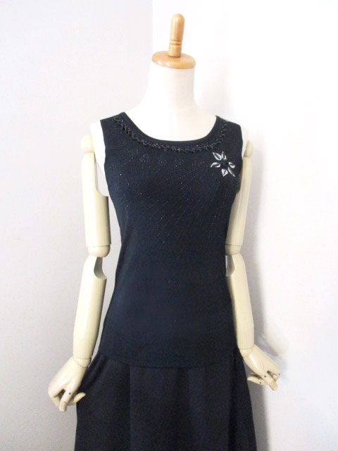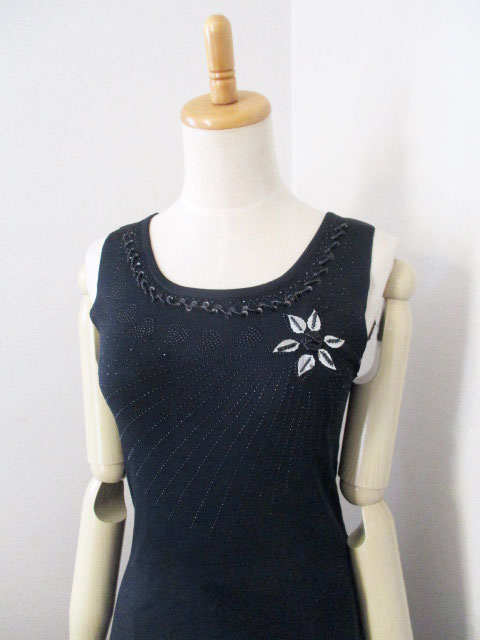 ■ブラックベース×ビーズ&スパンコール・ストレッチニットノースリーブカットソー