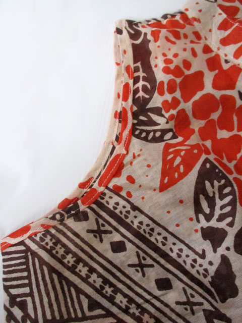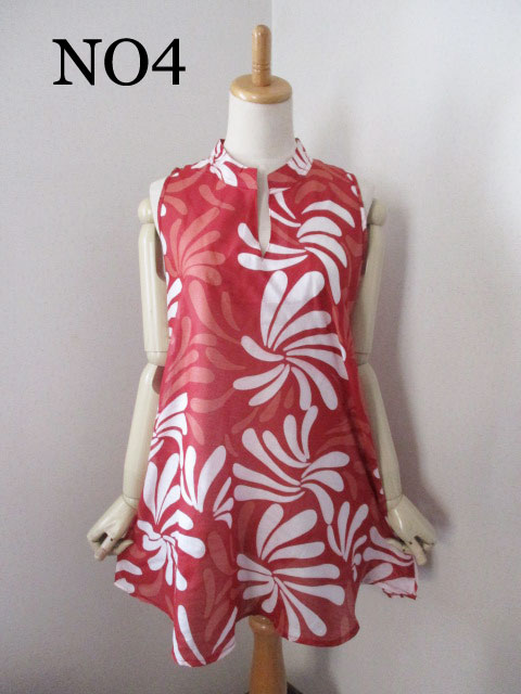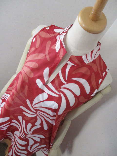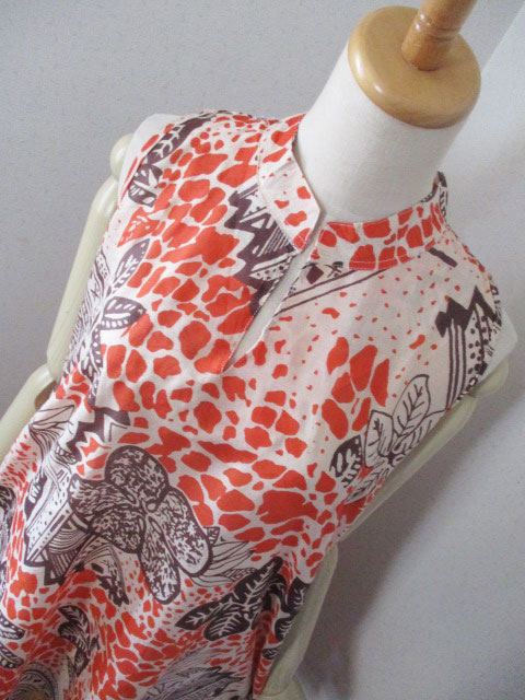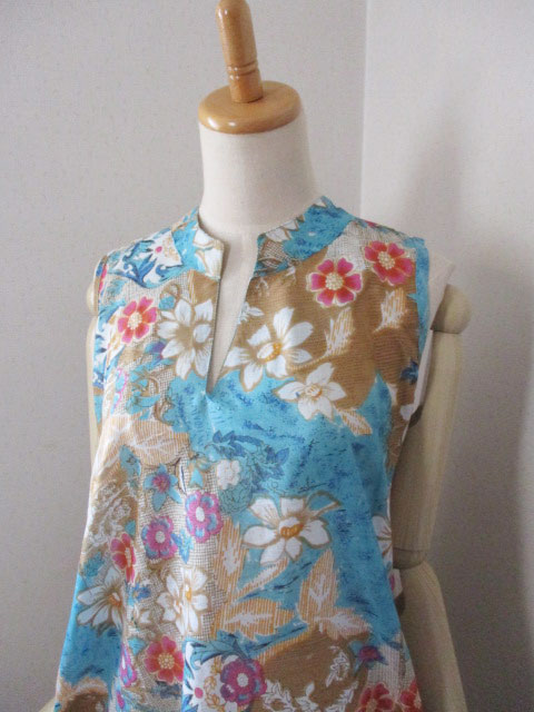■コットン×タイバティック・立ち襟スタイルノースリーブロングチュニック