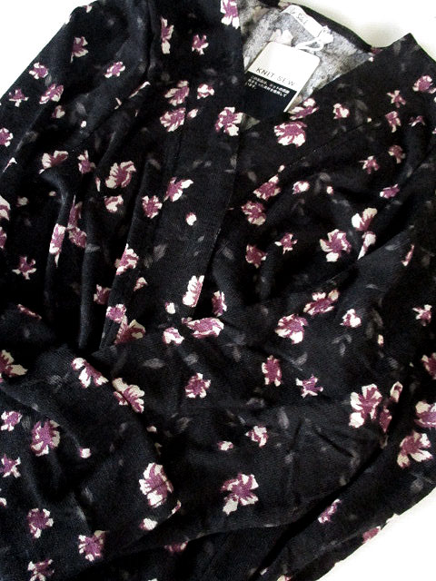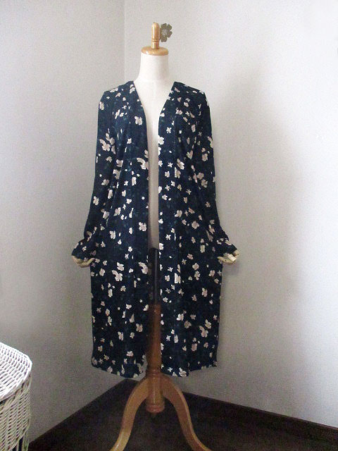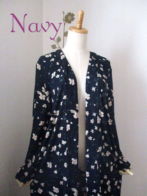 ■プレーン×フラワーデザイン・ニットソー素材ロングジャケットカーディガン