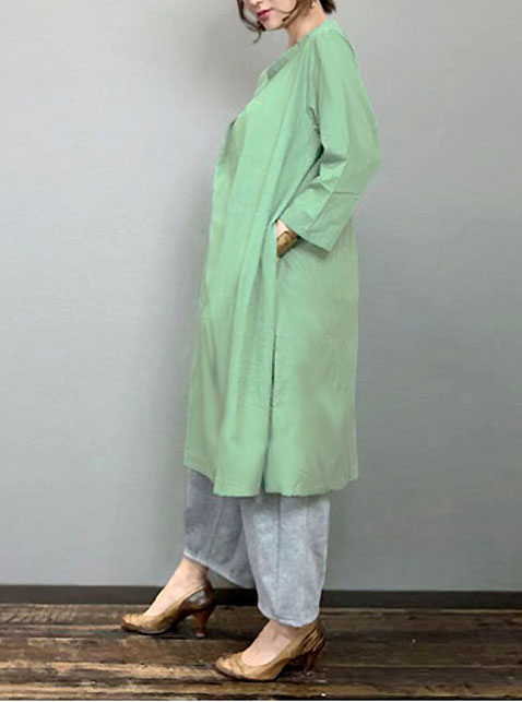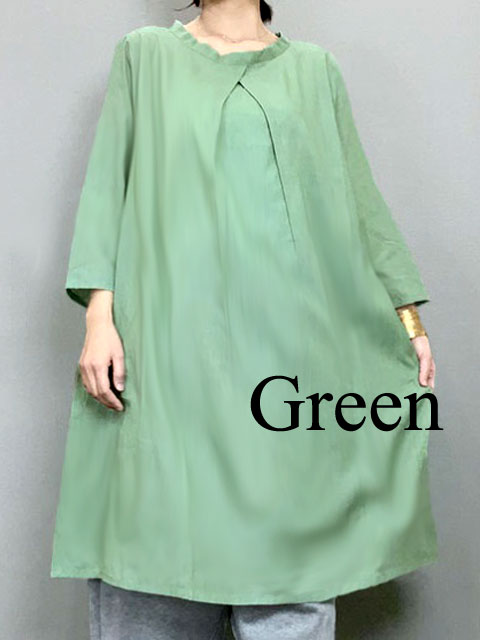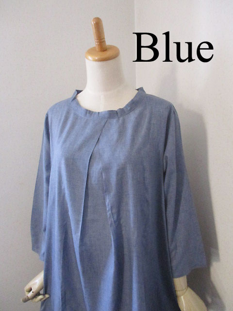 ■インディプレーン生地使い・フロントタックAラインワンピース