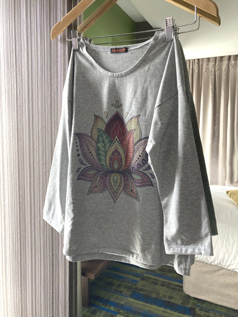 ■ナチュラルコットン×グレー杢・ロータスデザイン70%スリーブTシャツ