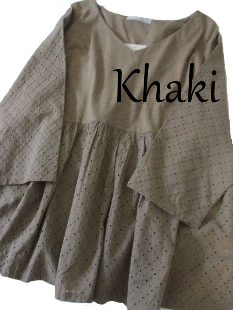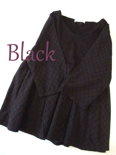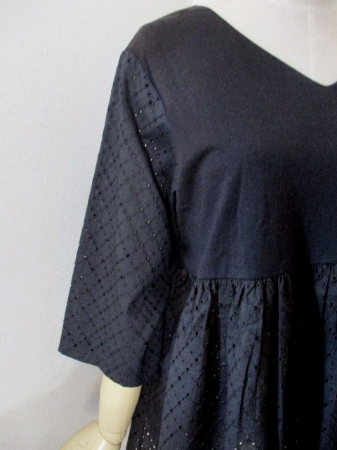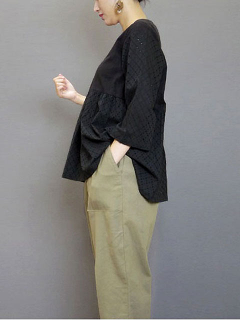■インディストレッチコットン・ペプラムデザインレース刺繍チュニック