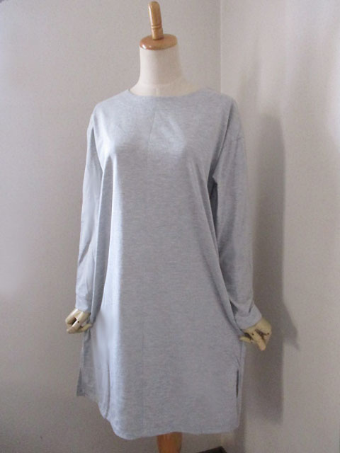 ■ライトグレー杢×サイドスリット・ドロップショルダーチュニックワンピース