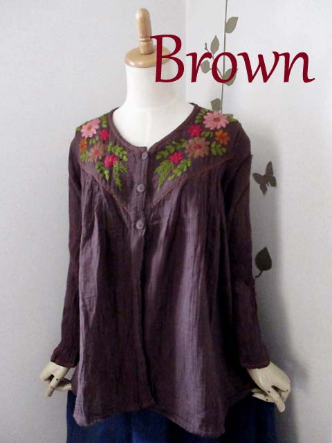 アジアで人気のダブルガーゼ素材を使ったロングスリーブのカーディガンで、フロント〜ネック周りに飾られたナチュラルな刺繍が目を引きます!