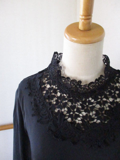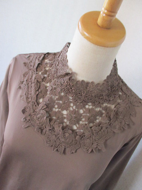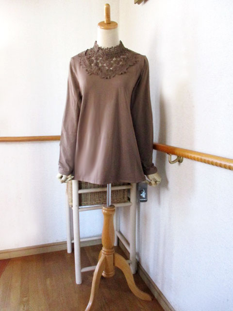 たっぷりのレース仕様!しっかりめのモチーフレースで華やかな印象のチュニックは、見た目にはそうわかりませんがしっかりとしたストレッチ素材!