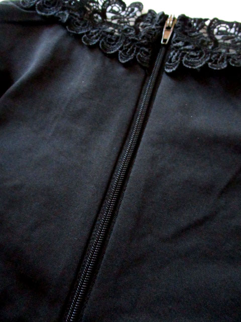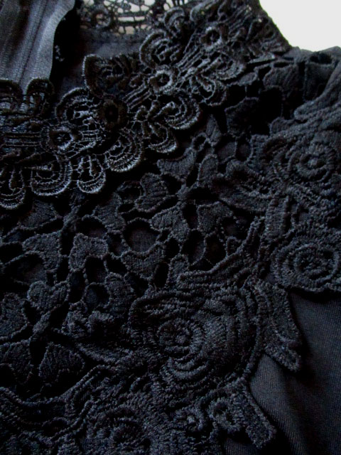 ネックと胸元を飾るレースもしっかり系で、わずかにハイになったネック部分は(首元にはゆとりがあり、ネックにひっつくものではありません)形を崩さぬようよりしっかりめ。