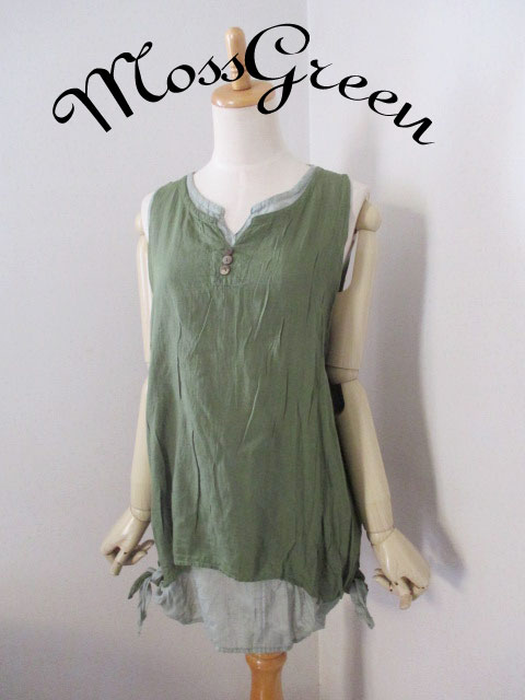■ダブルガーゼ×レイヤースタイル・ラウンドカットサイドリボンロングチュニック