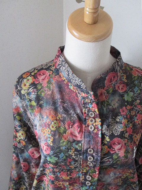 立ち襟+フロントにずらりと並んだボタンが特徴のBudyBestのアイテムで、着やすいプルオーバースタイルですが