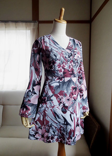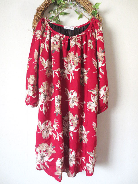 フラワーレッドシフォン・チャイナノットチュニックワンピ |