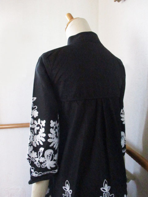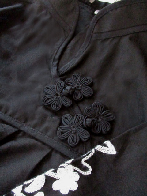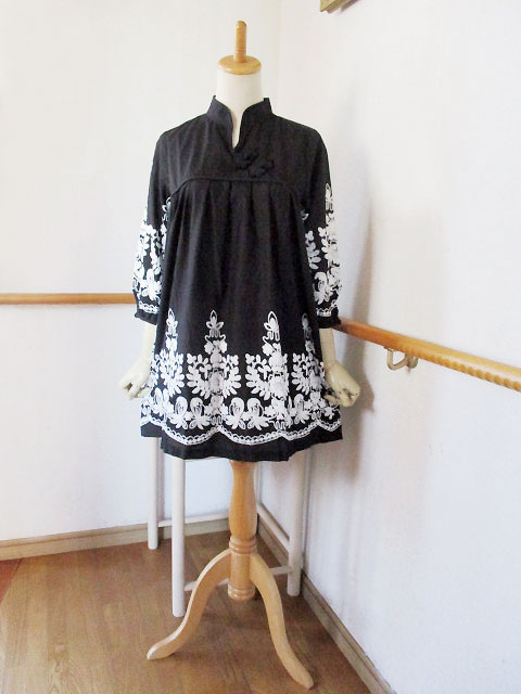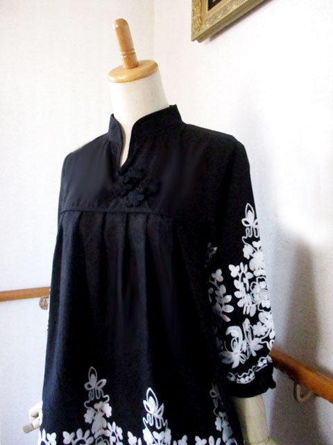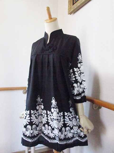 ■ブラック×モロッカン刺繍・タックスタイルシノワ花ボタンチュニックワンピース **by MyMieu**