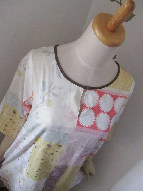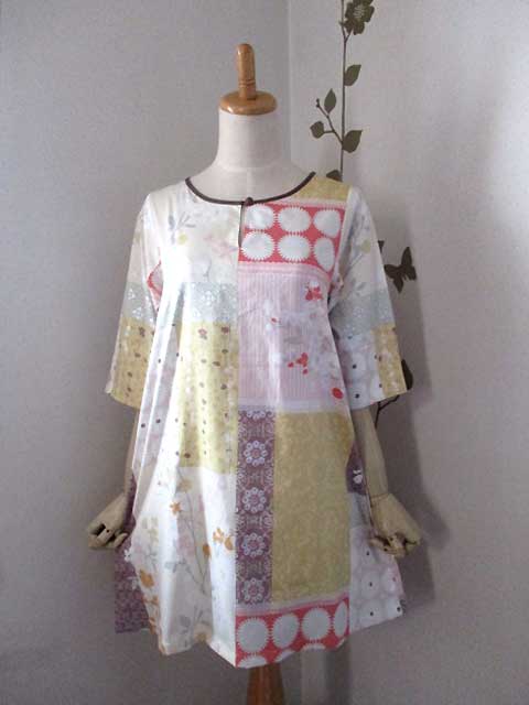 ■オフホワベース×バリ風パッチワーク・チャイナノットチュニックワンピース **by MyMieu**
