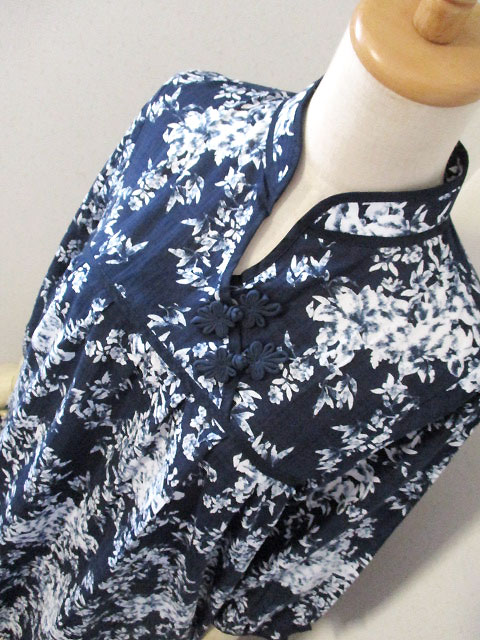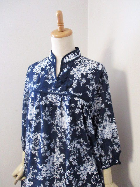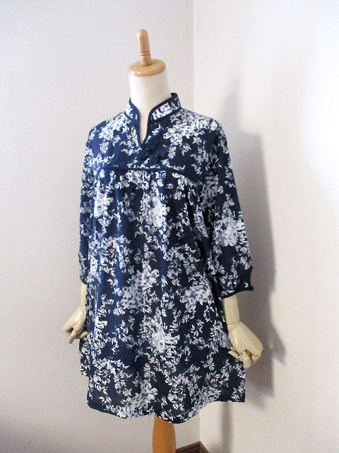 ■瑠璃色×オフホワ花・タックスタイルシノワ花ボタンチュニックワンピース **by MyMieu**
