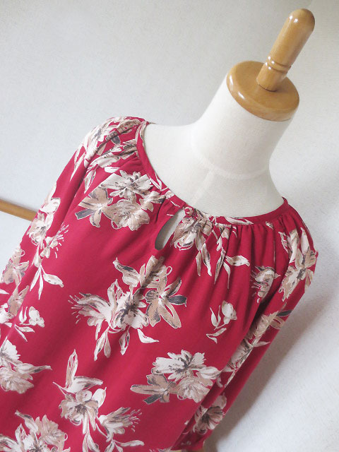 ■フラワーレッドシフォン・チャイナノットチュニックワンピ