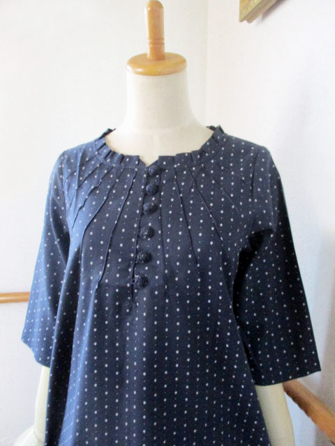 ■花紺青×オフホワ小花・タック×チャイナノットチュニックワンピース **by MyMieu**